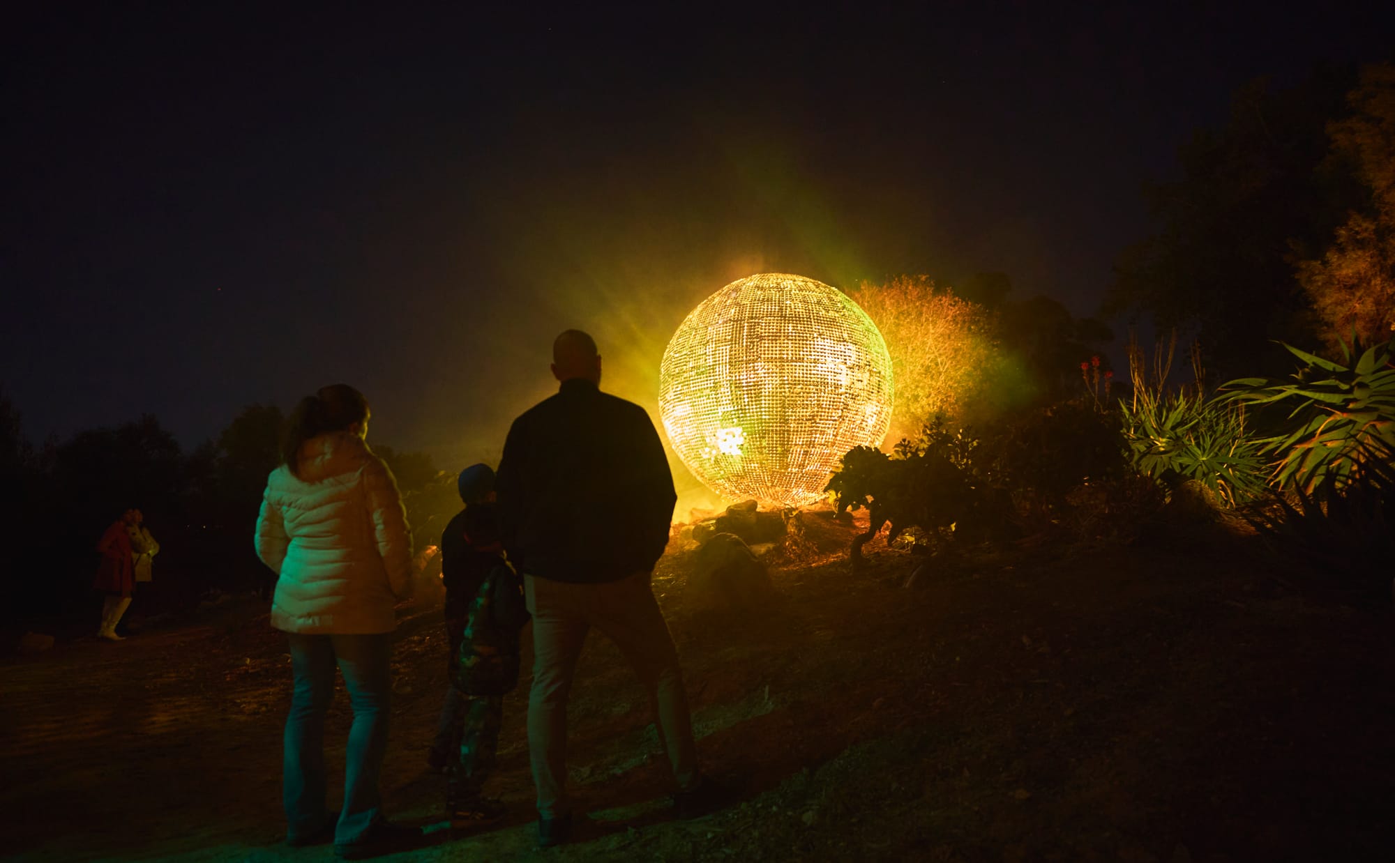 “When we arrive on site, the most important thing is the relation we will establish between the installation and the nature that surrounds it. When we’re scouting the site, we have in mind our installations and iterations of their layouts. Like the Cosmic Choir in LA, those balls of lights are under palm trees. We were drawn to how the light reacted and created beautiful shapes with the trunks and leaves. When we first arrived, on the first walk, we were on the path and we found these zones and knew this ascension would work here beautifully. And then it’s trying to understand how visitors will reach and connect different parts.”