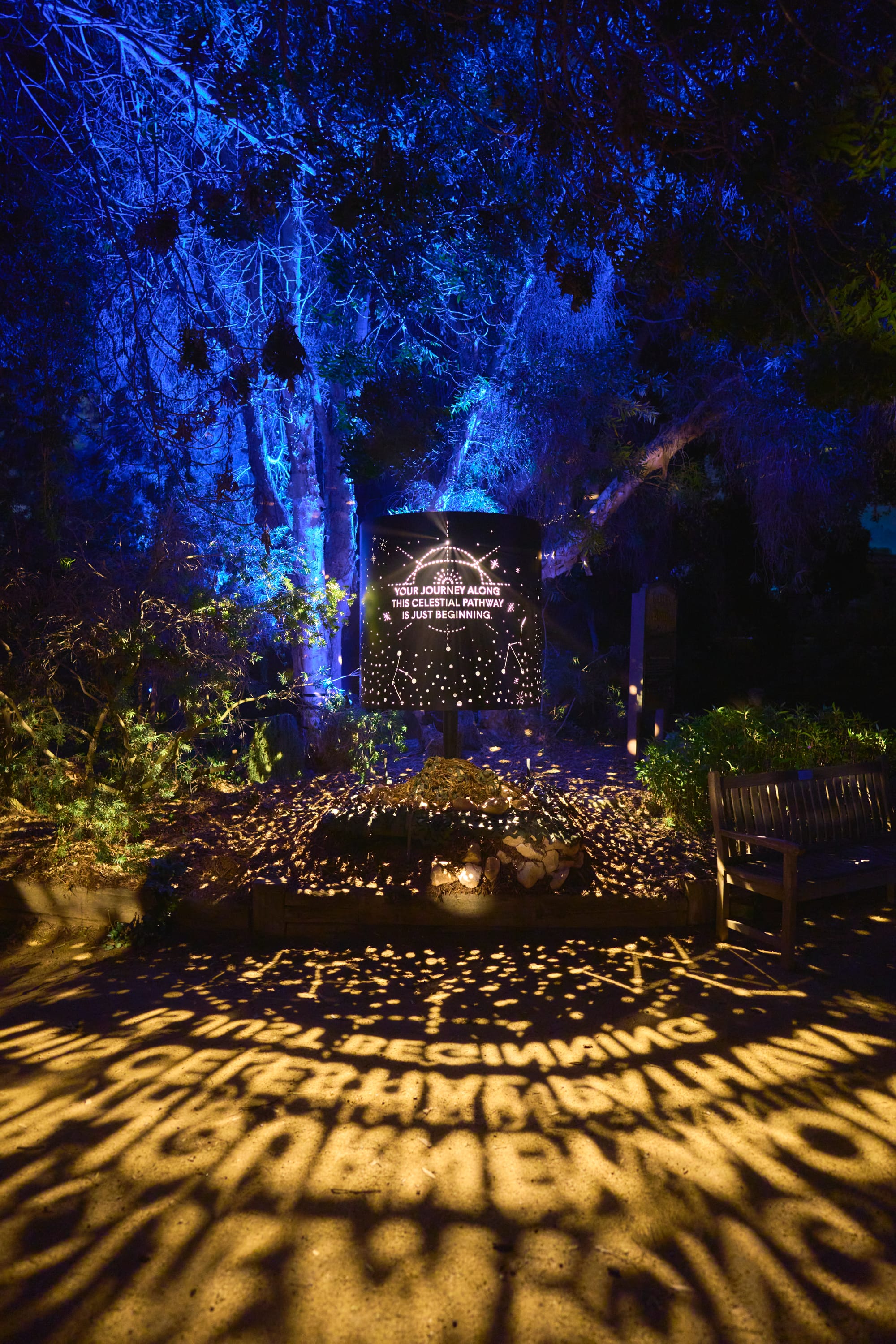 These are the first few minutes of Astra Lumina, the multi-site immersive installation with multiple locations around the world. Astra Lumina is billed as “an enchanted night walk that guides visitors on a journey to discover the wonder of visiting stars. Through the magic of projections, lighting, and music, astral energy transforms the garden into a celestial pathway, connecting visitors to the stars and the vast world around them.”