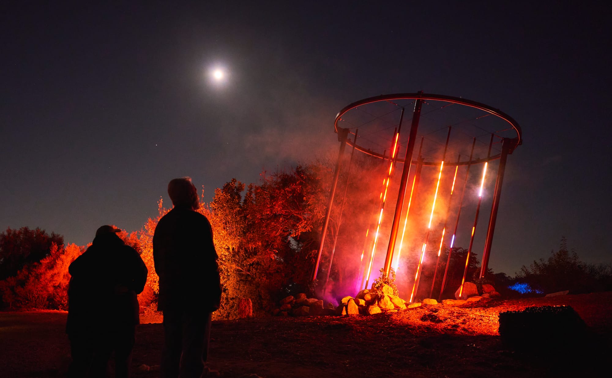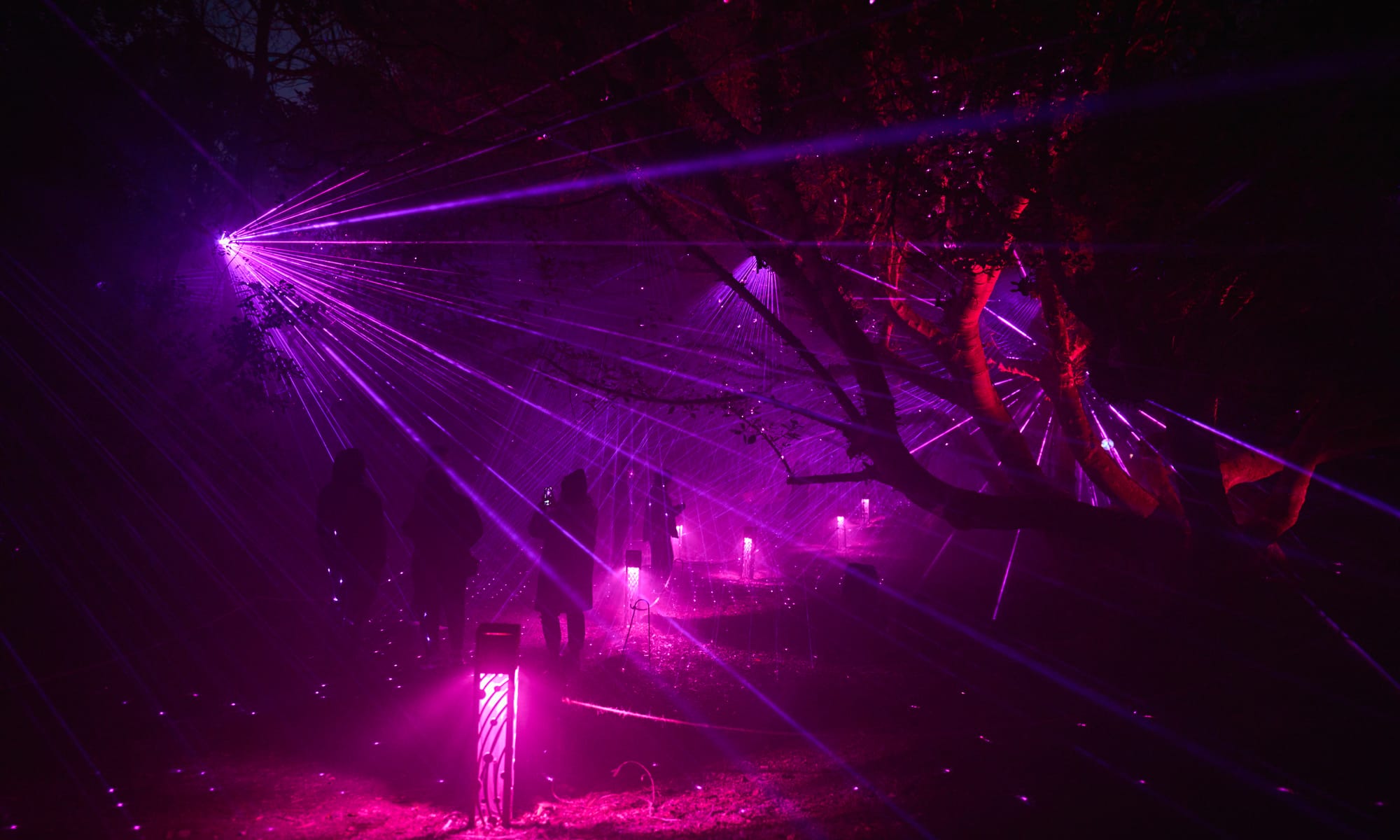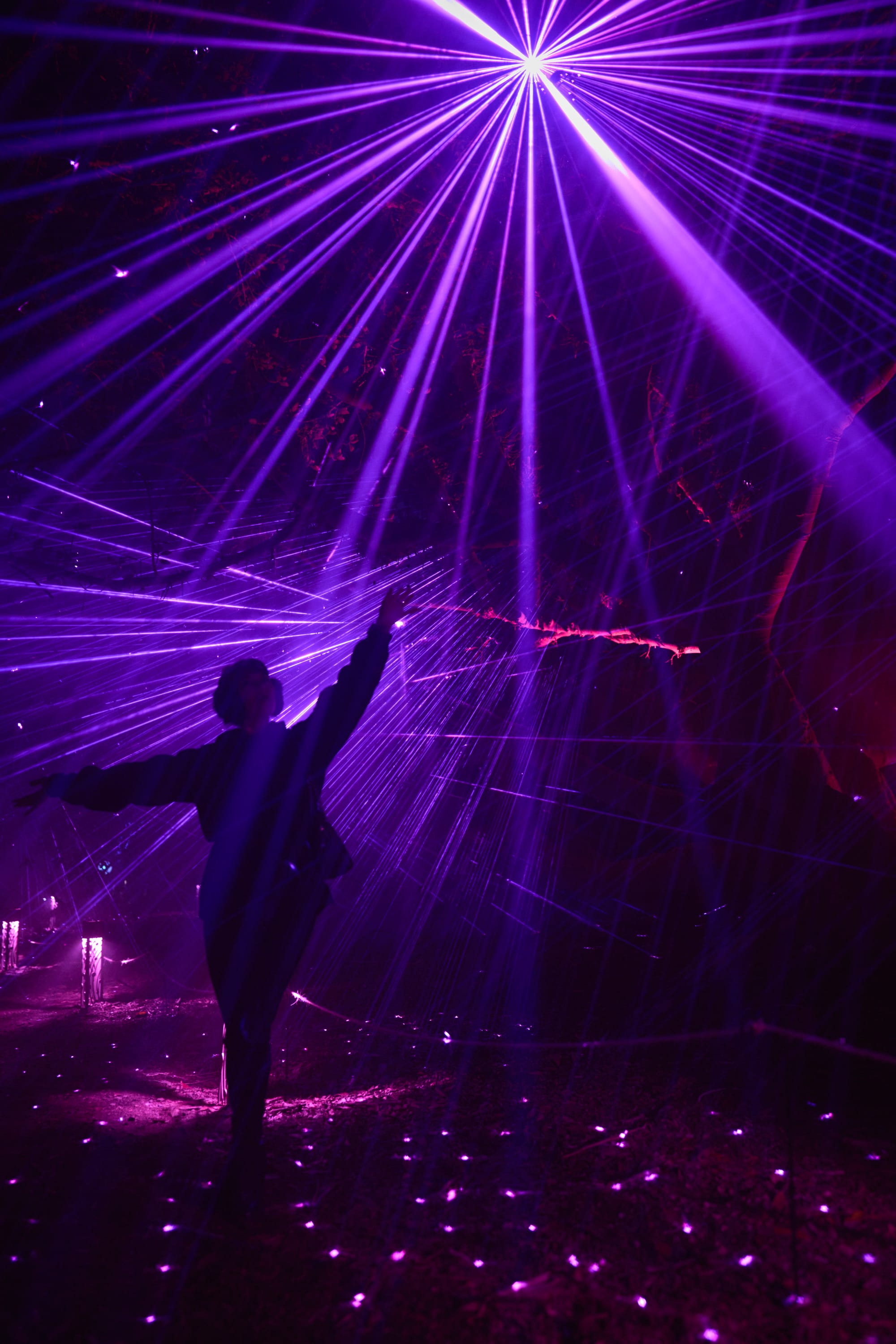 The team arrives first in the daylight, as they try to respect existing paths and not permanently alter a space. Then, they return at night, with handheld lights and speakers, moving around and experimenting. The team is armed with a collective memory of the installations, not a script, but a deep understanding of the music, lights, emotions, and feeling of what they are conjuring for the space.