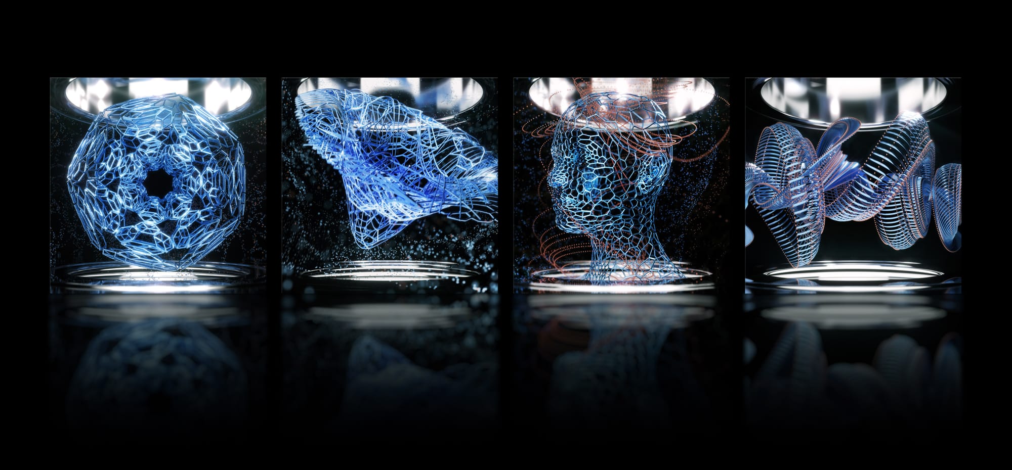 In all that, there is a repeating certain geometrical principles underneath everything. As a 3d artist, I tend to think in those terms, because you open your software, you look at nothing, and you begin to create something out of nothing. It feels like how the universe works, too. So, I feel like I I'm trying to emphasize those similar structures, and things happening in both the physical universe and in the digital space as well. Ultimately, that's a choice of aesthetics, but it also informs my conceptual framing and thinking about these concepts behind the scenes.