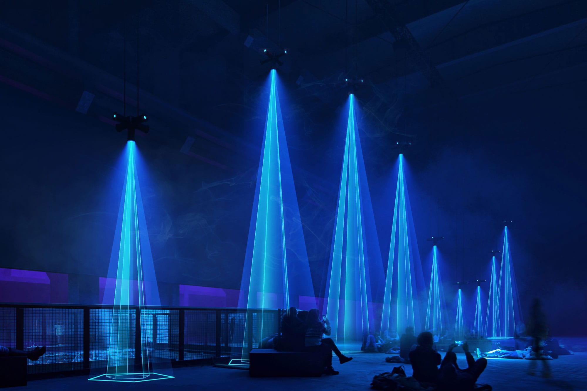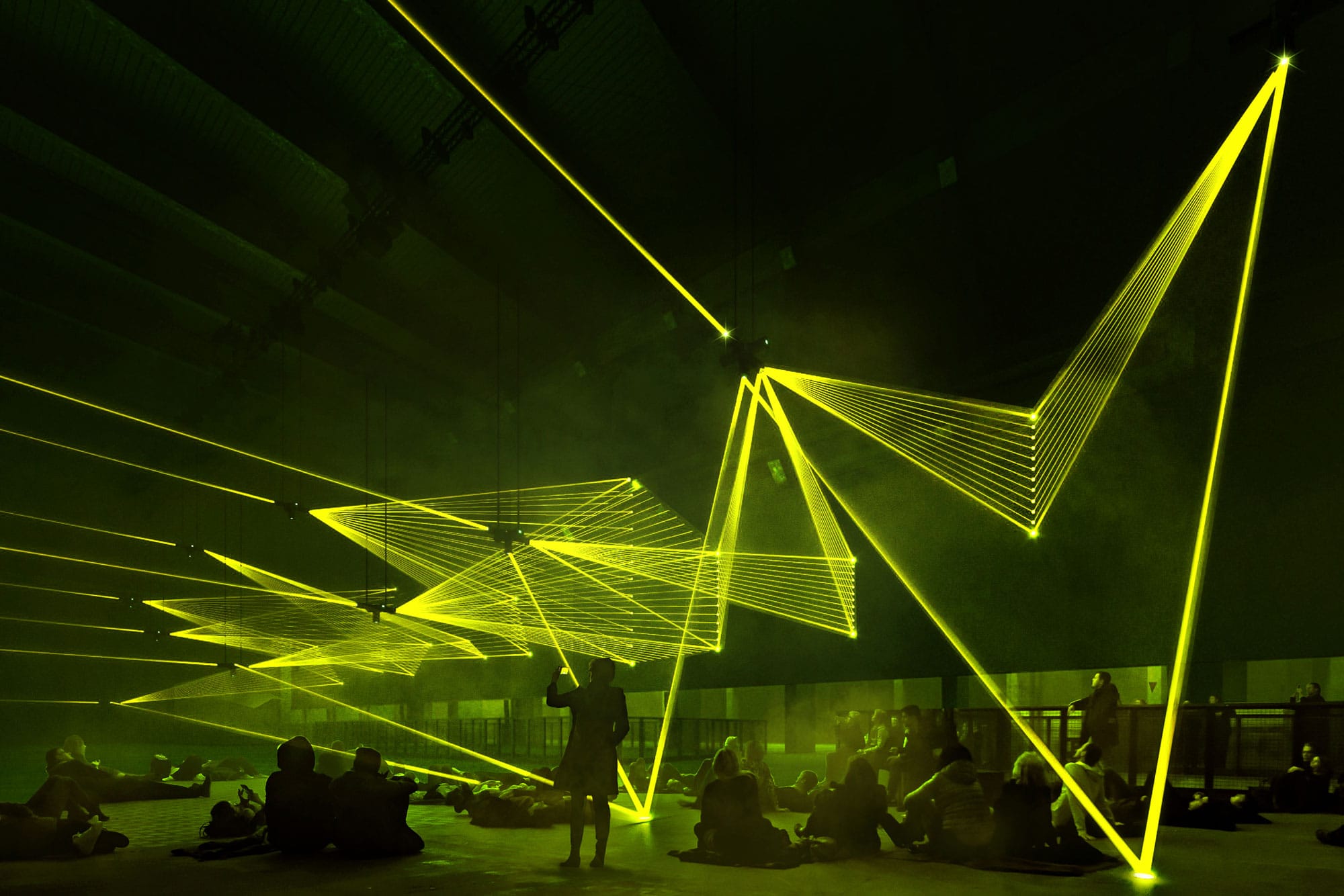 But then very early, I work with my musical collaborator, a composer, to figure out the story of it. You know, what do we want to talk about with the installation? For example, with Robert Henke, I have one piece with lasers and kinetics and it's called DEEP WEB.