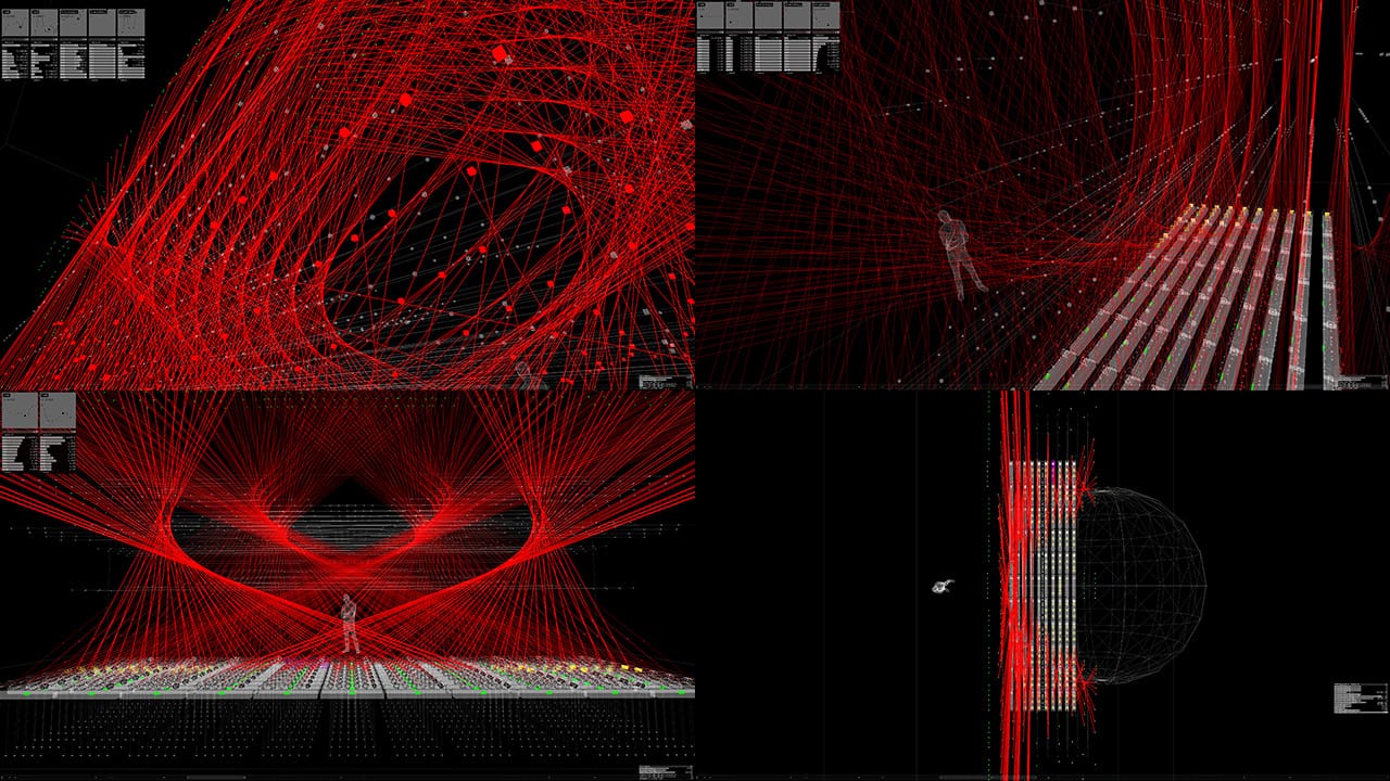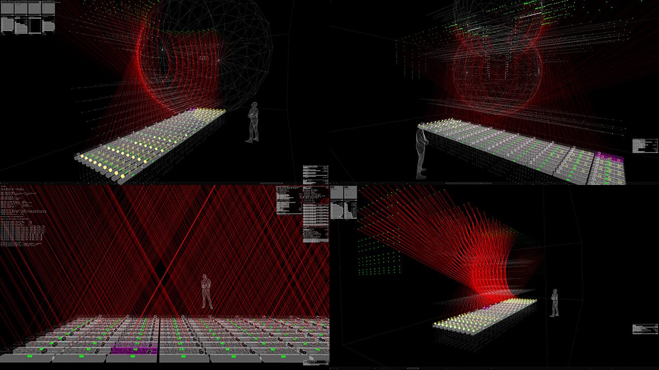 When developing an installation, I create 3D simulations whenever possible to visualize the final result. This is cost efficient, and I always have an environment where I can try it out as many times as I like, no matter where in the world I am.